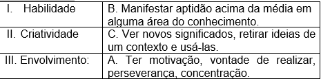 Habilidade: manifestar aptidão acima da média em alguma área do conhecimento.